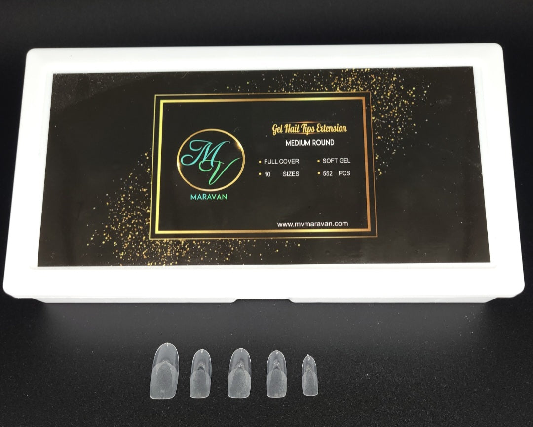 Maravan's Medium Round Gel Nail Tips Extension is made from soft gel, a material that can be melted off by acetone resulting a healthier choice for the natural nails. Our nail tips are lightweight and flexible, but also stronger on the end of the tips lasting up to 4 weeks of extension wear.