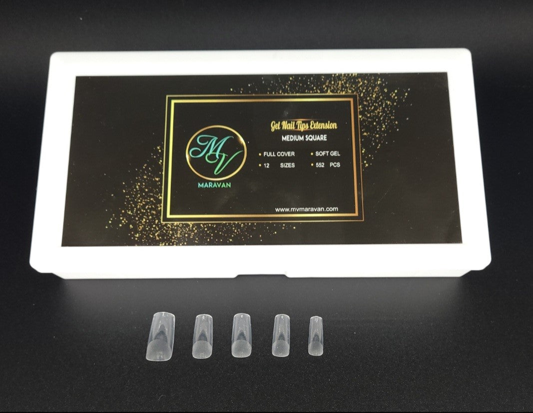 Maravan's Medium Square Gel Nail Tips Extension is made from soft gel, a material that can be melted off by acetone resulting a healthier choice for the natural nails. Our nail tips are lightweight and flexible, but also stronger on the end of the tips lasting up to 4 weeks of extension wear.