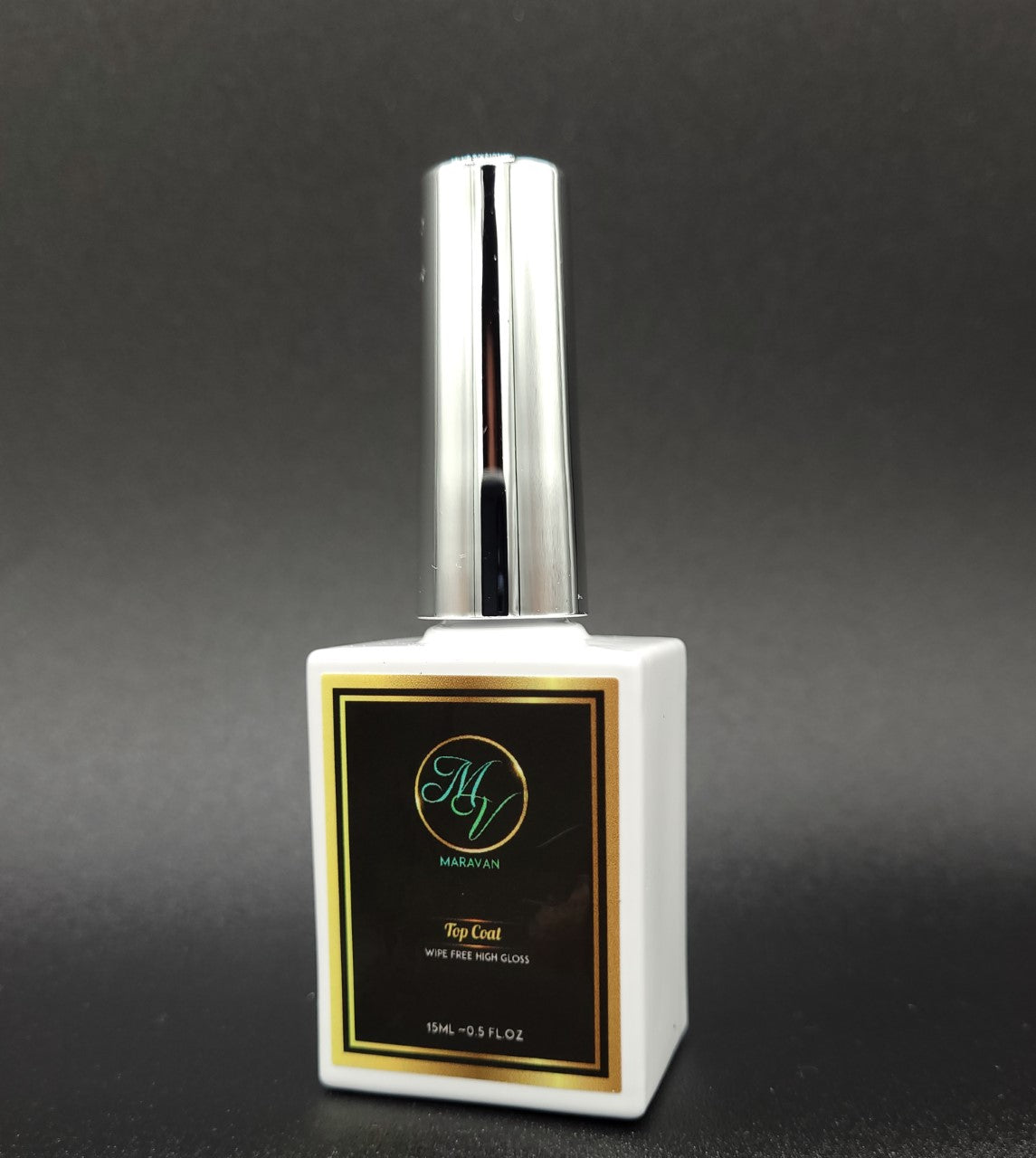 Maravan Top Coat is extra shiny and very glossy. Our top coat is a wipe free gel formula introduced so that once applied and cured for 30 seconds under the LED/UV light, it is ready to go. Maravan Top Coat creates a barrier on top of your design and colour for longer lasting nails.
