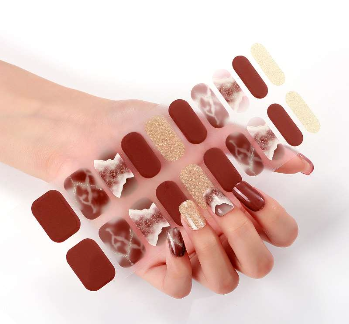 Maravan's Cured-On: Semi Cured Gel Nail Wrap is made from real gel polish that is 60% cured allowing a malleable texture to fit all nails. Once applied, the nail wrap fully cures 100% under the LED/UV light creating a perfect fit for designs and colours onto the nail. Our nail wraps are a healthier choice for your nails as the nail wrap adhesive could be removed by applying a generous amount of cuticle oil instead of soaking your nails in acetone or filing off the design. Maravan's Cured- On lasts a minimum of 10 days to 3 weeks if applied correctly.